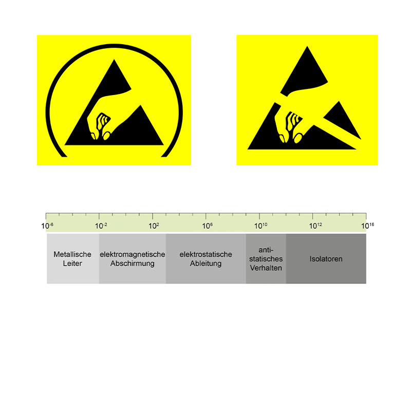 Materialien können anhand ihres Widerstandes gegen die Leitung elektrischen Stroms (gemessen in Ω), in verschiedene Klassen eingeteilt werden. So unterteilt man sie grob in Isolatoren, Materialien mit antistatischem Verhalten, elektrostatisch ableitfähige Materialien sowie Leiter.